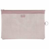 ●規格:A4●外形寸法:縦235×横355mm●内径寸法:215×327mm●メッシュ&ファスナー色:ローズピンク●マチなし●ジッパータイプ●リングフック付●本体材質:ビニール