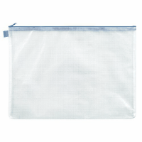 ●メッシュケース●業務用パック●マチ付●見出しなし●規格:A3●外形寸法:縦340×横470mm●内形寸法:縦325×横455mm●色:青●マチ幅:5mm●1パック入数:10枚●材質:オレフィン樹脂(EVA樹脂)●厚:0.27mm※内形寸法はファスナー開口部を基準としています。