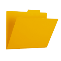 ●個別フォルダー●規格:A4-E●縦×横(mm):240×311mm●色:イエロー●材質:ポリプロピレン●見出し部分:15mm●厚:0.4mm●ファスナー用の切れ目があります●マチ用の折目が7/6/6mm間隔で3本入っています。●付属品:フォルダーラベル
