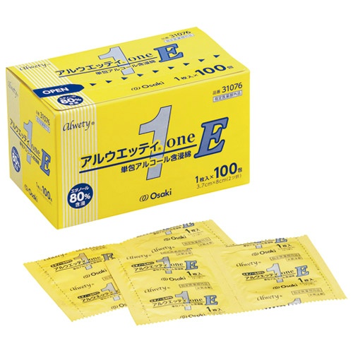 消毒に便利なアルコール綿。●入数:100包●1シート寸法(縦):37mm●1シート寸法(横)]:80mm●成分:エタノール80%(76.9~81.4voI%)含浸●指定医薬部外品:対象●種別:個包装●材質:脱脂綿●開封日記入欄付