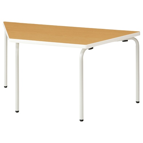 組み合わせ自由な台形テーブル。スタッキング可能で収納も省スペースに。●外形寸法(幅):1200mm●外形寸法(奥):520mm●外形寸法(高):580mm●天板厚:28.5mm●色(天板):ビーチ●アジャスター:有●キャスター仕様:無●付属品:無●付属品2:無●材質:天板=メラミン樹脂化粧板、エッジ=ソフトエッジ、脚部=スチールパイプ(メラミン焼付塗装・ホワイト)/スタッキング可能数:3台●翌日配送対象外商品 約3日のお届けです(例外あり)