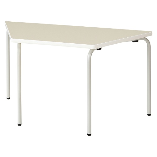 組み合わせ自由な台形テーブル。スタッキング可能で収納も省スペースに。●外形寸法(幅)[mm]:1200●外形寸法(奥):520mm●外形寸法(高):580mm●天板厚:28.5mm●色(天板):アイボリー●アジャスター:有●キャスター仕様:無●付属品:無●付属品2:無●材質:天板=メラミン樹脂化粧板、エッジ=ソフトエッジ、脚部=スチールパイプ(メラミン焼付塗装・ホワイト)/スタッキング可能数:3台●翌日配送対象外商品 約3日のお届けです(例外あり)