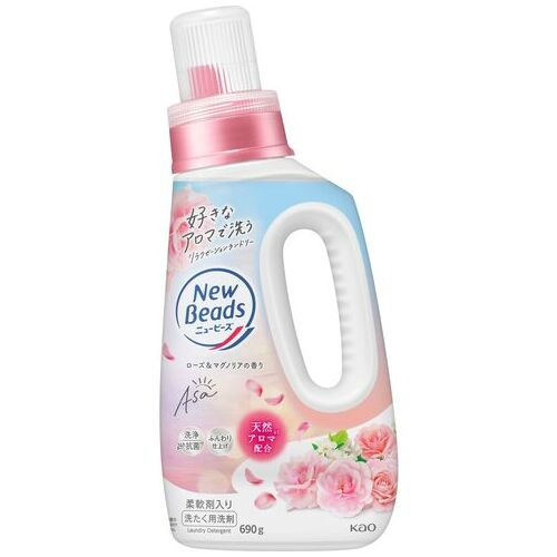 消臭&白さ。 華やかでみずみずしいローズ&マグノリアの香り内容量:690g●成分:界面活性剤(16%、高級アルコール系(非イオン))、安定化剤●液性:弱酸性●香り:ローズ&マグノリアの香り●用途:綿・麻・合成繊維用●規格:洗濯用合成洗剤●種別:本体
