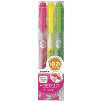 ●軽い力で開けられるEZ(イージー)キャップです●蛍光マーカー(シングルタイプ)●つめ替え式●中綿タイプ●仕様:3色セット(ピンク・黄・緑)●線幅:4.0mm●水性顔料インク●本体長:135.1mm●軸径:11.5mm