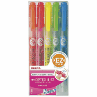 ●軽い力で開けられるEZ(イージー)キャップです●蛍光マーカー(シングルタイプ)●つめ替え式●中綿タイプ●仕様:5色セット(ピンク・オレンジ・黄・緑・青)●線幅:4.0mm●水性顔料インク●本体長:135.1mm●軸径:11.5mm