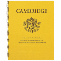 ●リングノート●品名:ケンブリッジ●罫内容:普通罫7mm(33行)●枚数:62枚●色:表紙=黄色●サイズ:幅218×高さ283mm●中紙坪量:75g/平方m●中紙紙厚:90マイクロm●スパイラルリングとじ