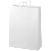 ●手提袋●平紐タイプ●規格:特大●色:白●外形寸法:幅380×高520×マチ145mm●1パック入数:50枚●耐荷重:約10kg※耐荷重は常温の状況下での目安です。天候や中に入れる物質形状、性質により異なってきますのでご注意ください。●材質:晒クラフト120g/m2