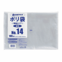 ●ポリ袋●規格:NO.14●寸法:縦410×横280×厚0.03mm●色:透明●1パック入数:100枚●材質:低密度ポリエチレン