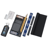 ●携帯に便利な手提げかばん付書道セット●色:黒●セット内容:中皿、筆巻、墨、筆(太筆・細筆)、墨滴、すずり、ぶんちん、下敷き、水差し