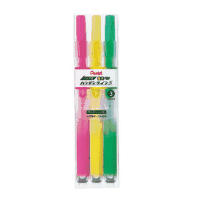 ●蛍光マーカー(シングルタイプ)●つめ替え式●中綿タイプ●ノック式タイプ●仕様:3色セット(イエロー・ピンク・ライトグリーン)●線幅:1.0~3.5mm●水性顔料インク●本体長:143mm●軸径:12mm●片手ですばやく使えるノック式