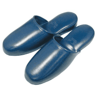 ●底が圧着タイプ、糸不使用なので糸切れたり、ほつれる心配がありません。●スリッパ●規格:Lサイズ●色:ブルー●材質:PVC(アニリン加工)●サイズ(内寸):27.5cm●かかと高さ:約2.5cm●入数:10足組