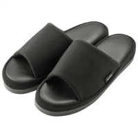 ●足裏にあたる部分に低反発素材を使用したスリッパ。ポリウレタン素材の中敷きなので汚れてもサッと拭ける。●スリッパ●サイズ:L●色:ブラック●材質:本体=綿、中板=ポリウレタン、底=EVA樹脂●寸法内寸:26.0cm●適応サイズ:25.0~27.5cm●かかと高さ:約3.2cm