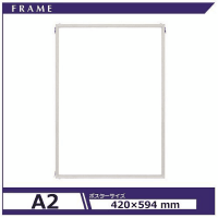 ●フレーム●タテ・ヨコ吊り下げ可●規格:A2●質量:430g●収容寸法:縦594×横420mm●外形寸法:厚9mm●材質:フレーム=アルミニウム、表面シート=PET、裏面=発泡スチロール●色:シルバー●フレーム幅:11.5mm●付属品:吊り下げ用ひも●収容可能厚:1.5mm