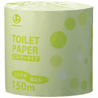 ●たっぷり150m幅107mmのエコノミータイプ●1ロールずつ包装されているので衛生的にお使いいただけます●トイレットペーパー●仕様:シングル150m●幅:107mm●1箱入数:48ロール●個別紙包装●芯なし●材質:古紙パルプ配合率100%●ミシン目なし●紙管を使用していませんので、使い終わった後に紙芯が残りません●包装紙も水に流せます●1枚ずつ流して下さい