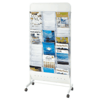 ●外寸:幅780×奥行350×高さ1520mm●質量:17kg●内寸:W213×D34×H297mm●カラー:ホワイト・クリア●材質:フレーム=スチール角パイプ、ラック=ポリスチレン●上部ポップ部分寸法:W720×H134mm●最大積載質量:45kg●収納可能厚:34mm●適合サイズ:A4●キャスター(ストッパー付2無2)付●スタッキング可能●組立品●翌日配送対象外商品 約3日のお届けです(例外あり)