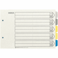 ●インデックス●ヨコ型●規格:B5-E●インデックス寸法:縦28×横10mm●穴数:2穴●仕様:5色5山6枚1組●入数:10組●材質:色クラフト紙●外形寸法:縦182×横267mm●穴間隔:80mm