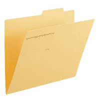 ●個別フォルダー●規格:B4-E●色:イエロー●材質:ファイルカード紙●外形寸法:縦272×横378mm●見出し部分:15mm●坪量:360g/平方m●ファスナー用の切れ目があります●マチ用の折り目が7/6/6mm間隔で3本入っています(最大マチ幅19mm)●10枚入