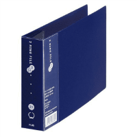 ●リングファイル●ヨコ型●丸型リング●内ポケット無●規格:B6-E●適正収容数:210枚●背幅:35mm●色:ネイビー●材質:表紙=ポリプロピレン●表紙厚:1.0mm●外形寸法:縦138×横212mm●穴数:2穴●穴間隔:80mm●リング内径:26mm●背見出し交換タイププ●紙押さえ2枚付
