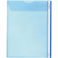 ●クリアホルダー●フタ付ホルダー●マチ付●フタ付●見出し付●タテ型●規格:A4●外形寸法:縦303×横236mm●色:青●材質:ポリプロピレン●厚:0.2mm●収容枚数:コピー用紙100枚程度●マチ幅10mm
