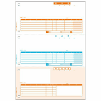 ●納品書●1枚サイズ:A4縦(210×297mm)・3分割●入数:500枚●マイクロミシン目入り●ミシン目切り離し後サイズ:210×99mm●2穴×3●内容:請求書・納品書・物品受領書●材質:上質紙●ニューメールサイズ窓付き封筒対応サイズ●印刷適性:カラーレーザー、モノクロレーザー、カラーコピー、モノクロコピー、インクジェット(染料・顔料)●刷り色:1段目(請求書)オレンジ、2段目(納品書)青、3段目(物品受領書)オレンジ