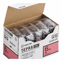 「テプラ」PROテープ 6mm パステル赤に黒文字 5個