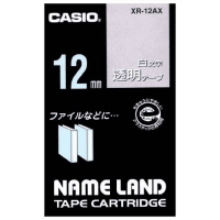 ●ラベルライター(カシオ計算機)●「ネームランド」用テープカートリッジ●テープ幅:12mm●色:透明に白文字●長さ:8m●入数:1個(紙箱入)
