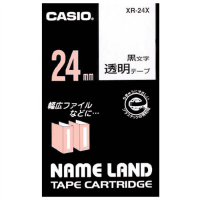 ●ラベルライター(カシオ計算機)●「ネームランド」用テープカートリッジ●テープ幅:24mm●色:透明に黒文字●長さ:8m●入数:1個(紙箱入)