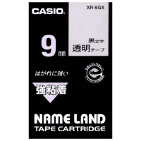 ●「ネームランド」用テープカートリッジ●強粘着●テープ幅:9mm●色:透明に黒文字●長さ:5.5m●入数:1個(紙箱入)