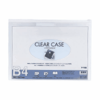 ●クリアケース●ヨコ型●マチなし●見出し付●規格:B4-S●外形寸法:縦290×横395mm●内形寸法:縦270×横385mm●色:本体=透明・ファスナー部=白●材質:オレフィン●厚:0.3mm●収容枚数:コピー用紙100枚●本体上部真ん中に見出し付。※見出し(中紙):縦27mm×横87mm