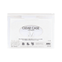 ●クリアケース●ヨコ型●マチなし●見出し付●規格:B5-S●外形寸法:縦215×横290mm●内形寸法:縦195×横280mm●色:本体=透明・ファスナー部=白●材質:オレフィン●厚:0.3mm●収容枚数:コピー用紙100枚●本体上部真ん中に見出し付。※見出し(中紙):縦27mm×横87mm