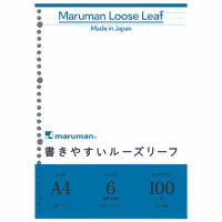●ルーズリーフ●規格:A4/30穴(2穴・4穴兼用)●サイズ:幅210mm×高さ297mm●罫内容:6mm罫(43行)メモリ入●枚数:100枚●中紙坪量:80g/平方m●中紙厚:105マイクロm