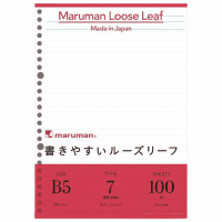 ●ルーズリーフ●規格:B5/26穴(2穴兼用)●サイズ:幅182mm×高さ257mm●罫内容:7mm罫(31行)メモリ入●枚数:100枚●中紙坪量:80g/平方m●中紙厚:105マイクロm
