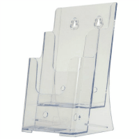 ●パンフレットスタンド●種別:A4判3折2段●外寸:幅118×奥115×高210mm●内寸:1段目=幅108×奥33mm、2段目=幅111×奥35mm●材質:ポリスチレン●色:クリア