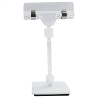 ●カード立●クリップ式●サイズ:幅60×高106mm●最大挟み幅:8mm●材質:クリップ部=ポリカーボネイト、ジョイント部=ポリアセタール、ポール=ポリスチレン●入数:1個●360度支柱の角度を自由に調整できるターンプライスクリップ