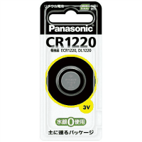 ●「水銀0使用」のリチウムコイン電池。●電池●リチウムコイン電池●メーカー型番:CR1220P●ブリスターパック●公称電圧:3V
