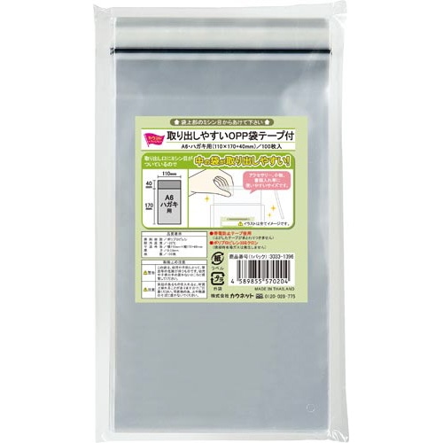 | 商品名 | 取り出しやすいOPP袋テープ付A6はがき用100枚 |