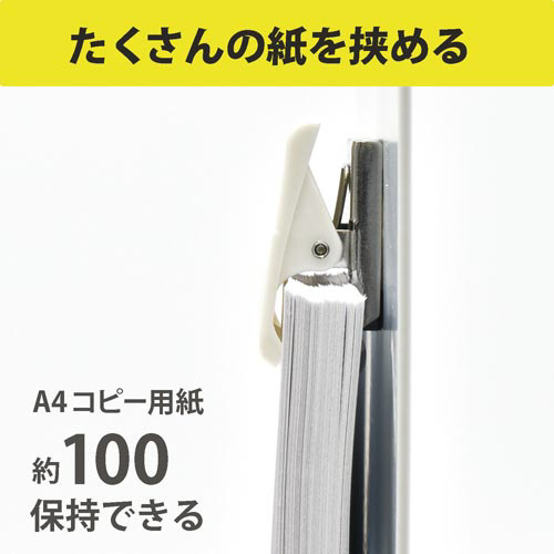 軽い力で開き、開口部のラバーグリップで書類やラミネート、クリアフォルダもしっかり保持できます●サイズ/S●カラー/白●保持枚数/約100枚●材質/上部:ポリカーボネート、土台:ステンレス、グリップ部:ラバー、裏面:すべり止め、磁石:異方性フェライト磁石●口幅/31mm●寸法/幅31×奥行20×高さ34mm●注釈/壁面や取り付ける紙によって、保持枚数が少なくなる場合がありますのでご注意ください。●単位/1個