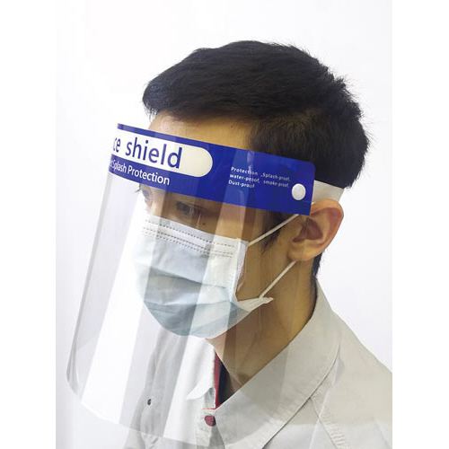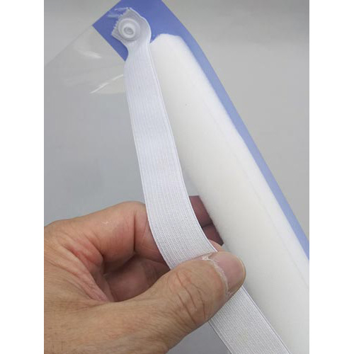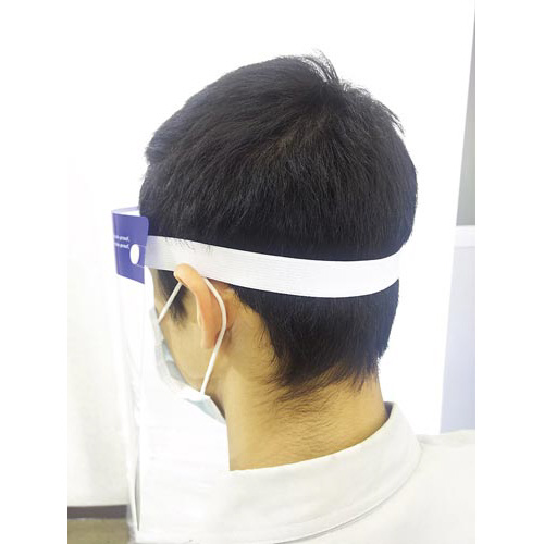 顔全体を覆い、飛沫・塵を防ぐ簡易式フェイスガード●サイズ/フリーサイズ●寸法/約幅325×高さ220mm●シート厚さ/約0.25mm●材質/シールド部:高透明度APET、スポンジ:ポリウレタン、ヘッドバンド:スパンデックス・ポリエステル●生産国/中国●単位/1セット(10枚入×10)