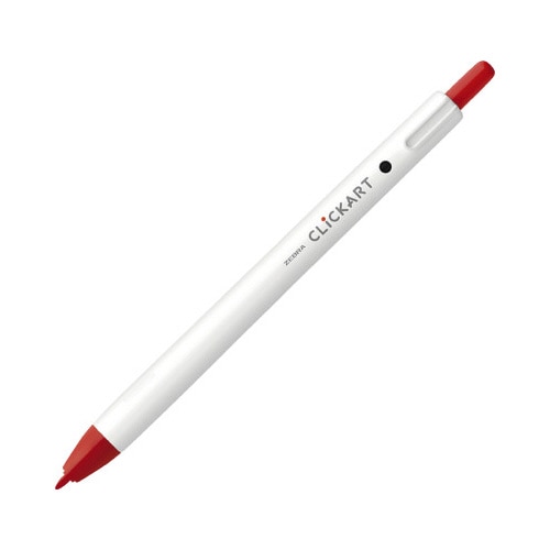 片手で使えるノック式のサインペン「クリッカート」。キャップの閉め忘れや紛失の心配がありません。空気中の水分を吸収するペン先が乾かないインクを採用しています。裏移りをせず、他の色と重ねてもにじみません。●線幅/約0.6mm●ペン形状/シングルタイプ●インク種類/水性染料インク●仕様/ノック式●カラー/赤●単位/1本