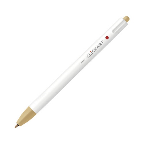 片手で使えるノック式のサインペン「クリッカート」。キャップの閉め忘れや紛失の心配がありません。空気中の水分を吸収するペン先が乾かないインクを採用しています。裏移りをせず、他の色と重ねてもにじみません。●インク種類/水性染料●仕様/ノック式●線幅/0.6mm●インク色/ライトブラウン●単位/1本