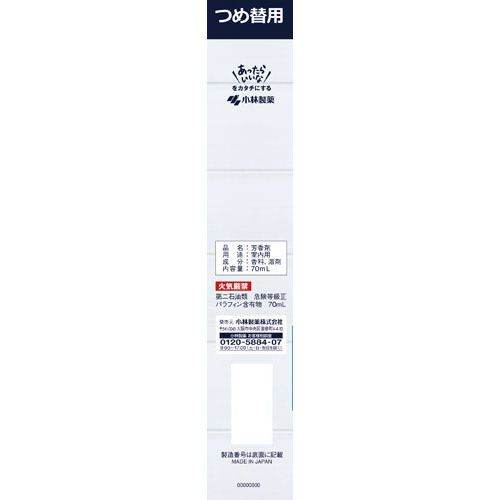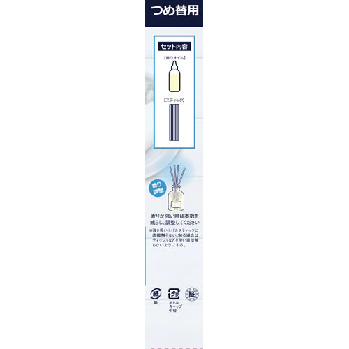 ※小児、認知症の方などの手の届くところには置かない。また、ペットが近づける場所に置かない。※薬液がつくと、シミや変色、変形の原因となる場合があるので、壁や家具、プラスチック製品に接触する場所に置かない。誤って薬液がついた場合は、すぐに拭き取る。※倒れて液がこぼれる恐れがあるので、不安定な場所やカーテン等に接触する場所には置かない。※気分が悪くなったときは、使用を中止する。※火気の近く(ストーブやコンロなど)や直射日光の当たる場所、高温や湿気の多い場所で保管・使用しない。※天然物を配合しているので、香りオイルが黄色いことがありますが、品質に問題ありません。※付属のスティック以外は使用しない。