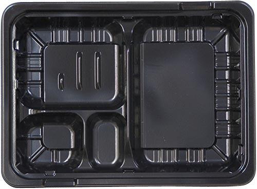 盛り付けがしやすいシンプルな弁当容器です。電子レンジ対応。ごはん盛り付け量目安約180g。●寸法/230×169×30mm●カラー/黒●材質/マルチSD●耐熱温度/110℃●生産国/日本●単位/1パック(50枚)