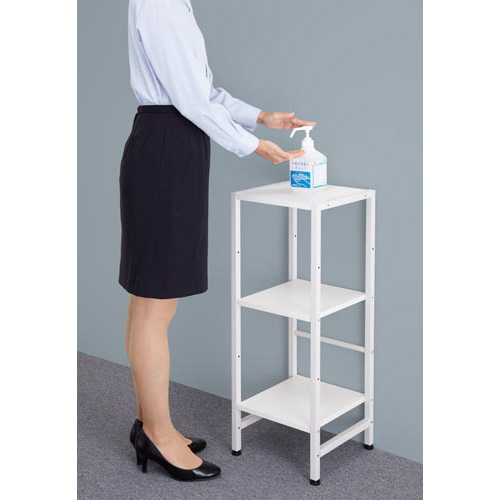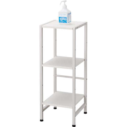 エントランスのちょっとした小物置きに最適なマルチスタンド。受付の電話やメモ、アルコール台として。●カラー/ホワイト●外寸法/幅302×奥行300×高さ800mm●材質/天板・棚板:(表面)メラミン化粧板(芯材)MDF、フレーム・ゆれ止めバー:スチール(粉体塗装)、アジャスター:PP●質量/約4.9kg●耐荷重/天板・棚板:1枚あたり約15kg(総耐荷重約45kg)●機能/アジャスター機能、可動式棚板2枚●可動棚板枚数/2枚●付属工具/六角レンチ●生産国/中国●組立/お客様組立商品●組立必要人数/1名●組立時間/20分●必要工具/なし●単位/1台