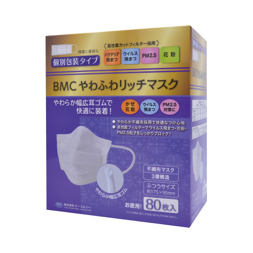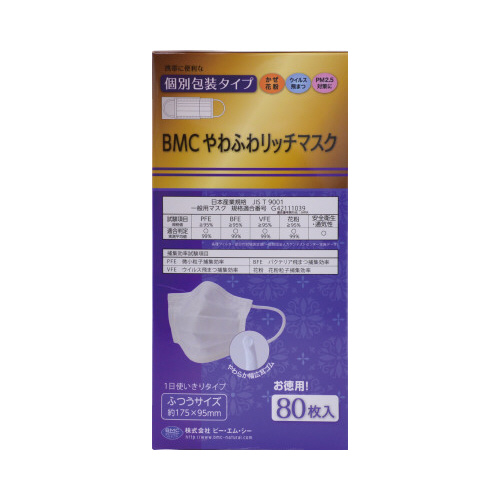 | 商品名 | BMCやわふわリッチマスク(個装) ふつう 80枚 |