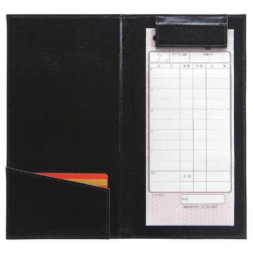 伝票を守りお客様のおもてなしなど最高です。●カラー/黒●寸法/横115×縦220mm●材質/塩ビシート●保持枚数/収納枚数:約20枚●仕様/内ポケット付●メーカー品番/EMS-5●単位/1個