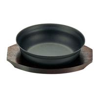 鉄板でアツアツのステーキを提供できます。ステーキ皿のサイズ表示は鉄板の外寸法になります。Feステーキ皿従来の鉄鋳物製と比べ軽量化を実現。熱効率が非常に高く、作業が楽になりました。●仕様/電磁調理器対応●(内寸)内径×高さ(mm)/φ175×47●質量(g)/560●(木台)間口×奥行(mm)/220×170●鉄板厚(mm)/2●単位/1個