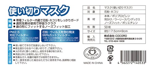 | 商品名 | 使い切りマスクレギュラーサイズ50枚入り |