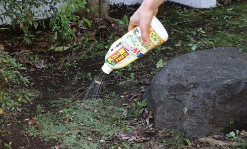 ※使用前に必ず製品表示を読み、十分理解した上で使用すること。※定められた用法・用量を守ること。※本剤はやや粘度が高いため、ボトル胴部を軽く押した場合、出口から液が出にくい時がありますが、その際は強めに押して使用すること。※環境を汚染しないため、乱用は避けること。池に流入する恐れのある場所での使用は注意すること。※散布後に雨や水がかかると効果が減少するので、改めて散布すること。※屋内では使用しないこと。※アレルギーやかぶれなどを起こしやすい体質の人、喘息の症状のある人は、薬剤を吸い込んだり、触れたりしないようにすること。※皮膚、飲食物、食器類、子供のおもちゃ、食用作物、ペット類にはかからないようにすること。