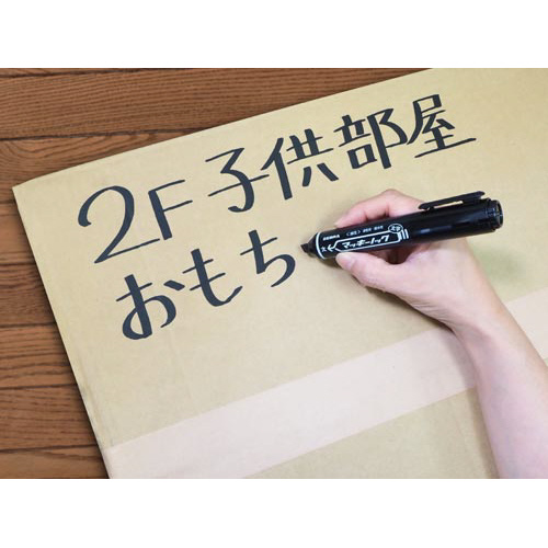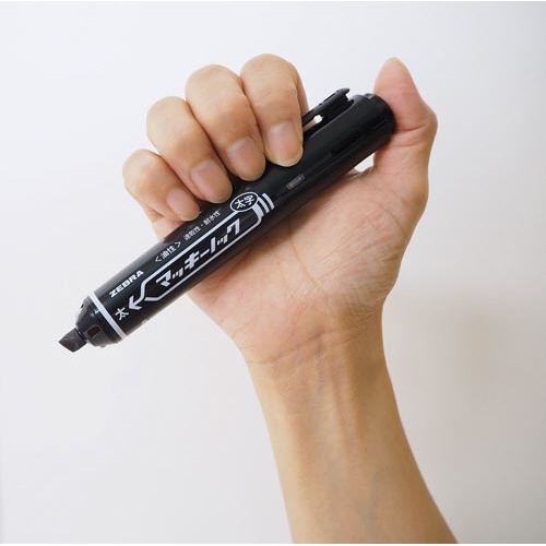 片手で使えて太い文字が素早く書けるノック式油性マーカー。キャップ紛失の心配がありません。速乾性・耐水性がある油性インクなので、紙・布・ガラス・プラスチック・金属・ビニール類など幅広く利用できます。●線幅/約6mm●ペン先/太字角芯●インク色/青●インク種類/油性染料インク●タイプ/ノック式●仕様/セリースパック入り●単位/1本