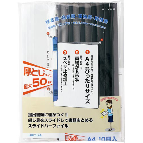| 商品名 | スライドバーファイルA4縦50枚とじ黒10冊×10 |